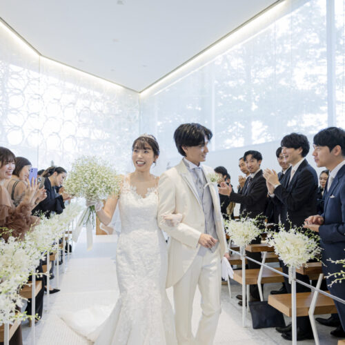 生演奏とゲストの祝福に満たされたアットホームな挙式が叶います