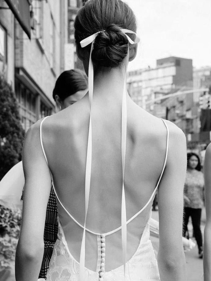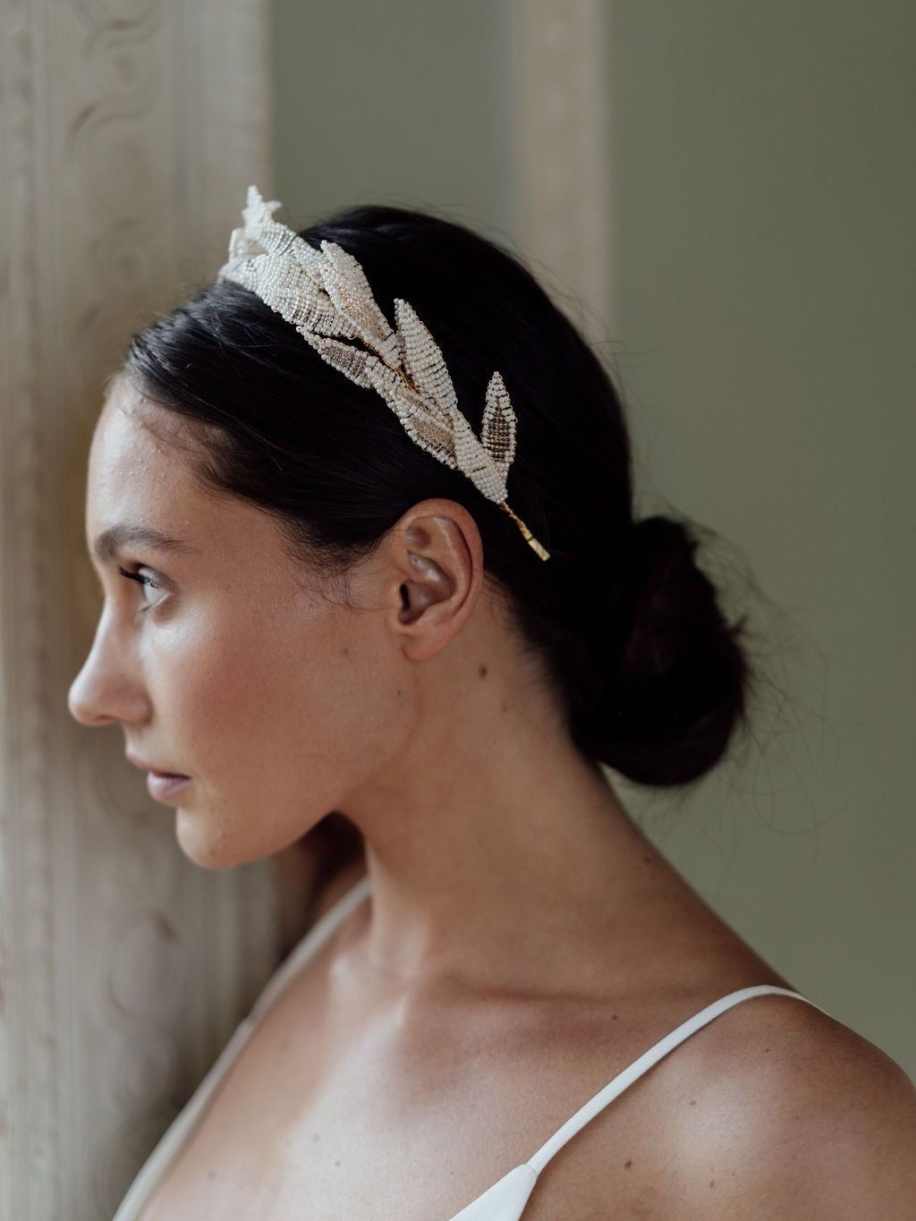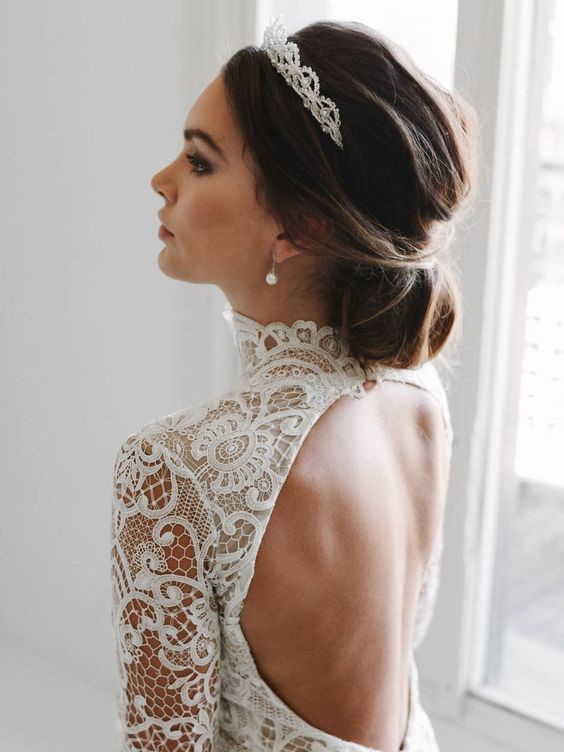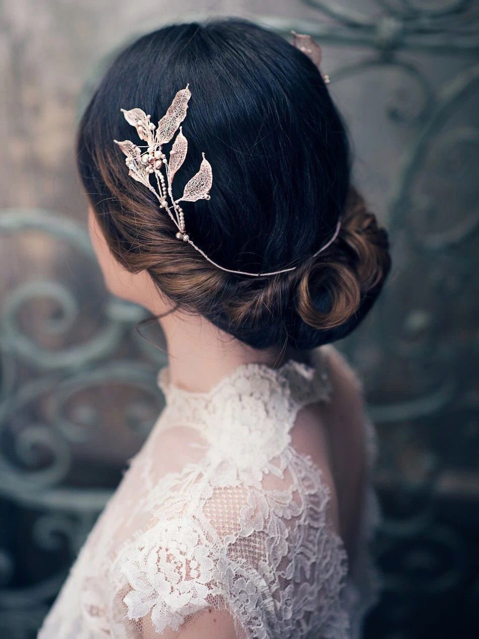 ふんわりまとめたシニョンにカチューシャをつけるだけで、特別な日の装いがぐっと洗練された印象に。