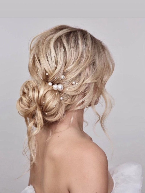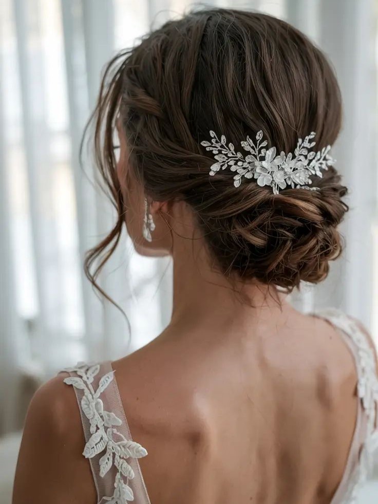 光を受けてきらめくビジューは、ヘアに華やかさを添えてくれるアイテム。