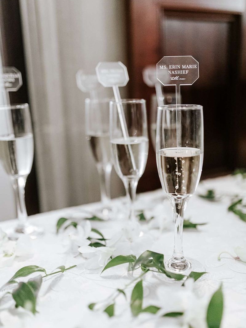 アクリルにゲストネームを印字すれば、マドラーとしても使えるエスコートカードに。