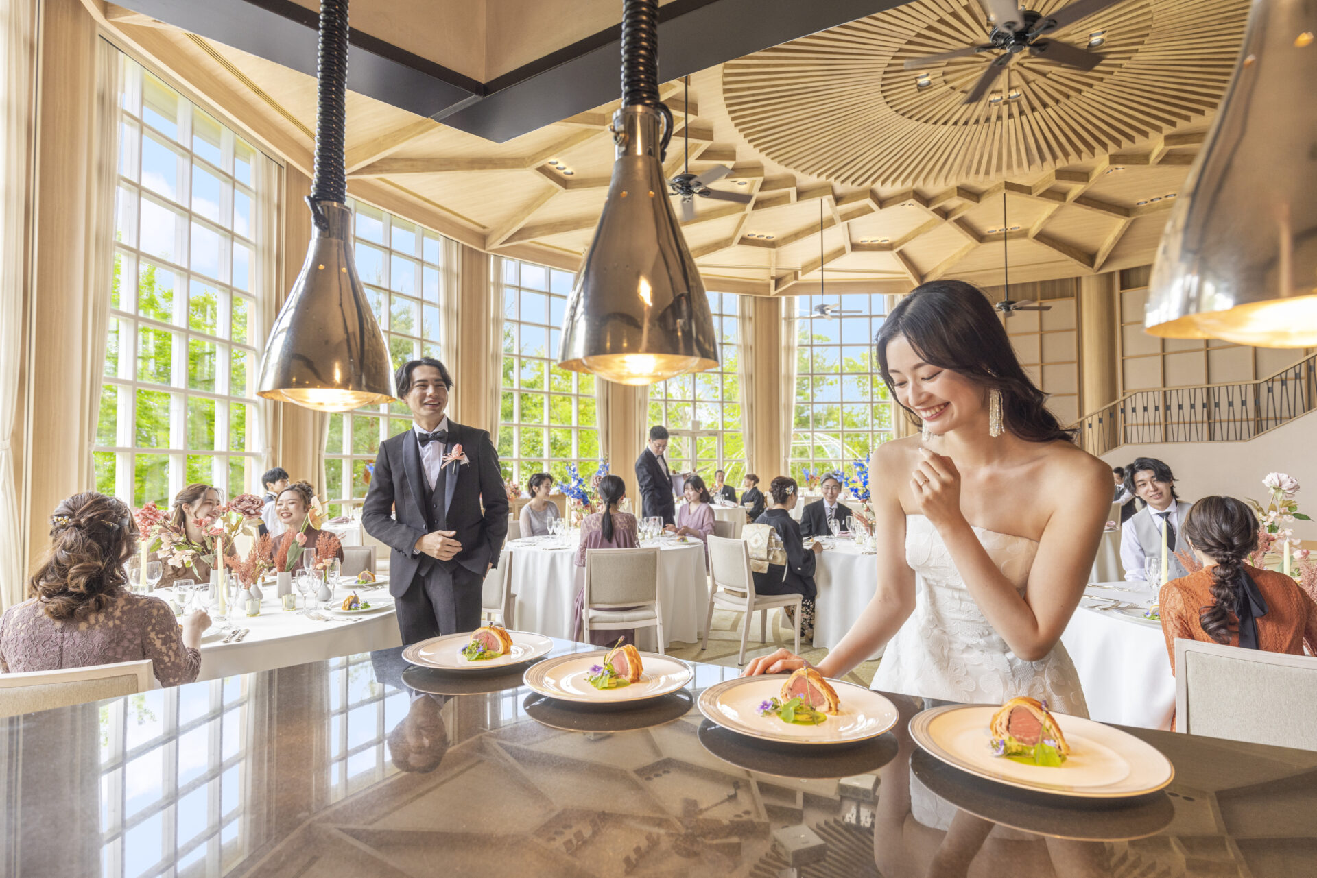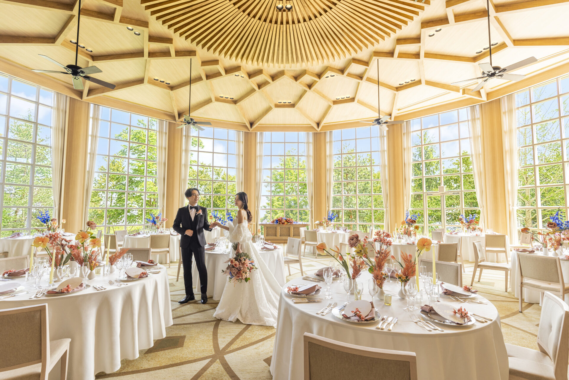 また挙式会場は珍しい円形で、ゲスト一人一人が誓いの瞬間を見届けることができます