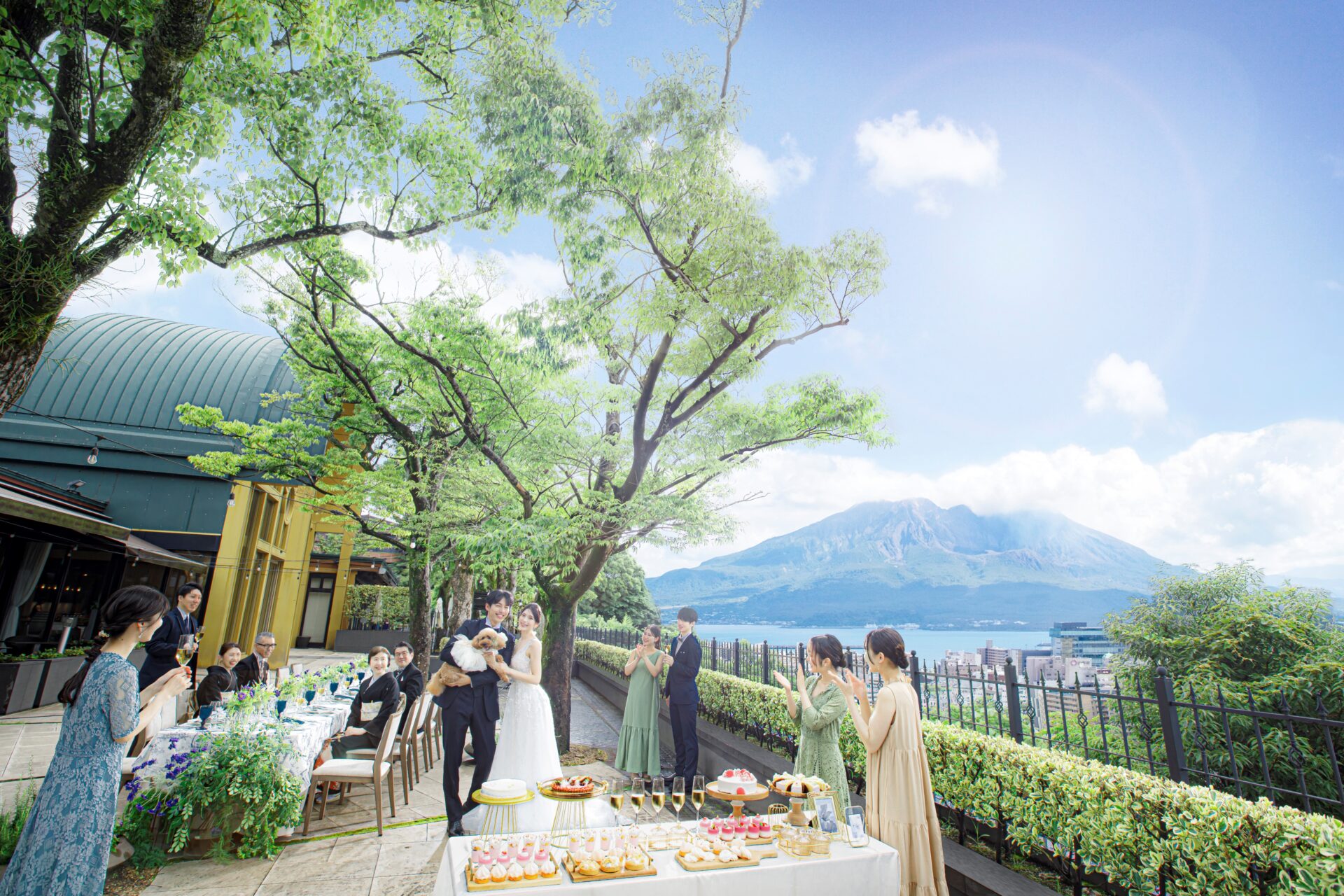 “城山のみどりの木立のなかで結婚式を挙げていただく”