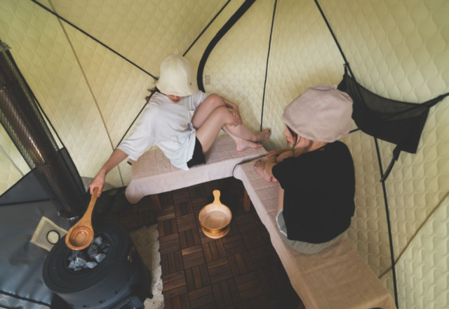 山形県小国町産クロモジオイルを使用した、ロウリュを体験することができ、自然の香りに包まれながらサウナを楽しむことができます。