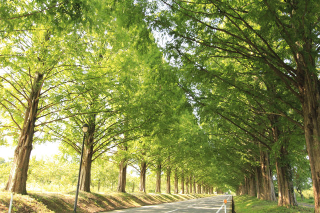 メタセコイアという樹木が、2.4kmに渡って約500本並ぶ様子は圧巻です。