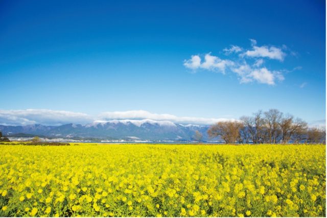 守山市今浜町の湖岸沿いにある「第1なぎさ公園」では、菜の花畑が楽しめます。