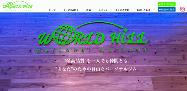 World Hillは、様々な実績を持つアスレティックトレーナーと、ベビーシッター資格を持つ看護師のいるパーソナルジムです。