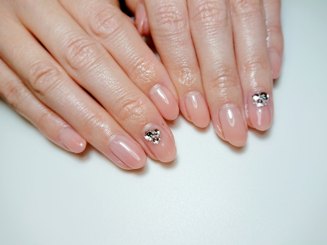 自爪の色に近い、薄いピンクでシンプルに仕上げたデザインです。