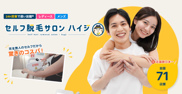 ハイジは、24時間営業のセルフ脱毛サロンです。
