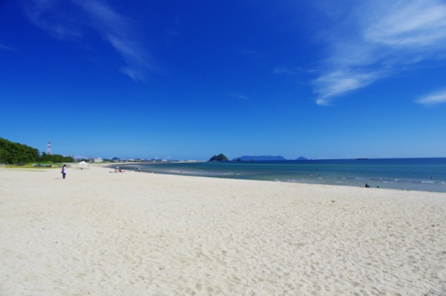 こちらの海水浴場は、日本の渚100選にも選ばれていて、白い砂浜と緑の松、そして青い海がなんとも言えない見事なコントラストを見せてくれます。