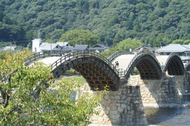 日本三代名橋の一つとして数えられる錦帯橋は錦川に掛かるアーチ構造の橋です。