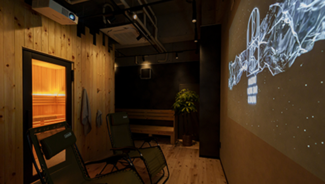 また、ラウンジでサウナ飯やドリンク、スイーツをいただきながら、プロジェクターで映画や動画を楽しむこともできます。