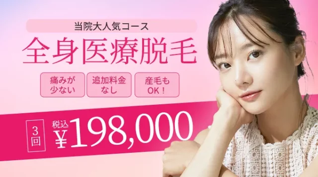 医療脱毛だけでなく、フェイシャルメニューや痩身治療なども取り扱っているため、トータルケアを城本クリニックで行なってみてはいかがでしょうか。