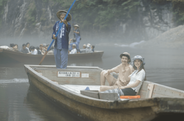 船頭さんが竿一本で巧みに船を操作し、四季折々の景色の中をゆるやかに進みます。特に紅葉シーズンは大変な人気で、多くの人が訪れます。