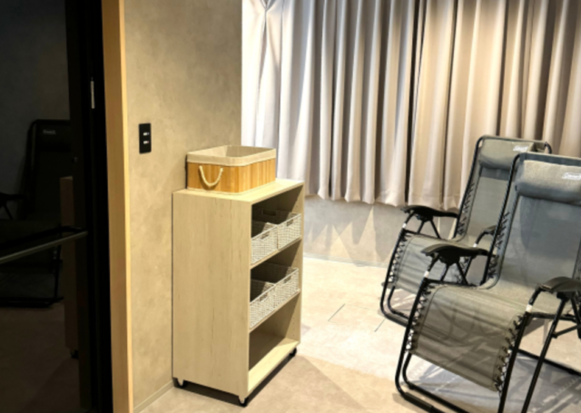 室内には、ソファも置いてあり、広々としているため、サウナ後もゆったりと過ごすこと可能です。