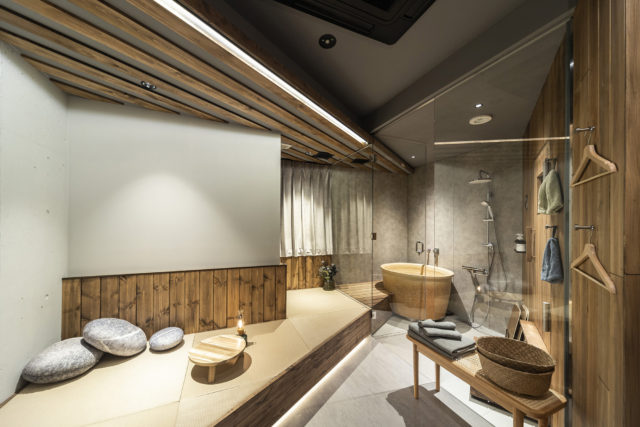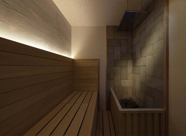 DELUXE ROOMは、九州初上陸、ドライとスチームのハイブリットサウナを楽しむことが可能です。また、蒸気による自動ロウリュとなっています。