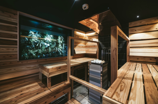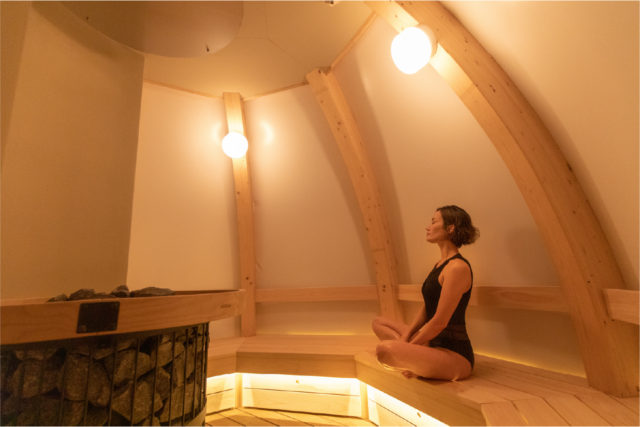 サウナは本格フィンランド式で、90℃のサウナとアロマ水で蒸気を発生させる「セルフロウリュ」を楽しむことができます。