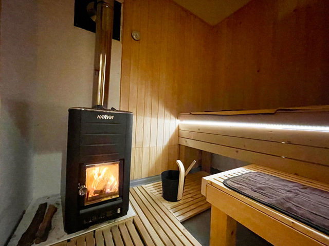 薪ストーブを使用したサウナで、揺らぐ炎を見ながらサウナを楽しむことができます。