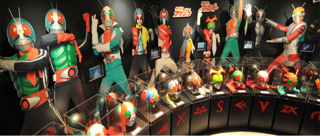 有名な仮面ライダーも歴代から現在放映中の仮面ライダーのマスクが全て揃っており、各年代の仮面ライダーのオープニングムービーが流れています。