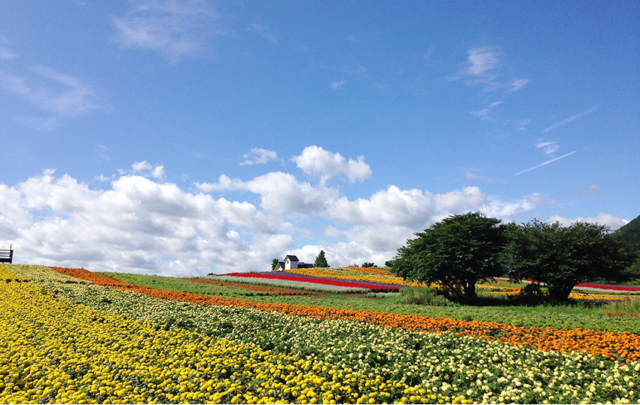 春には菜の花やチューリップが、夏にはローズ、秋にはコキアやラベンダーなど季節ごとの花が庭園を彩ります。