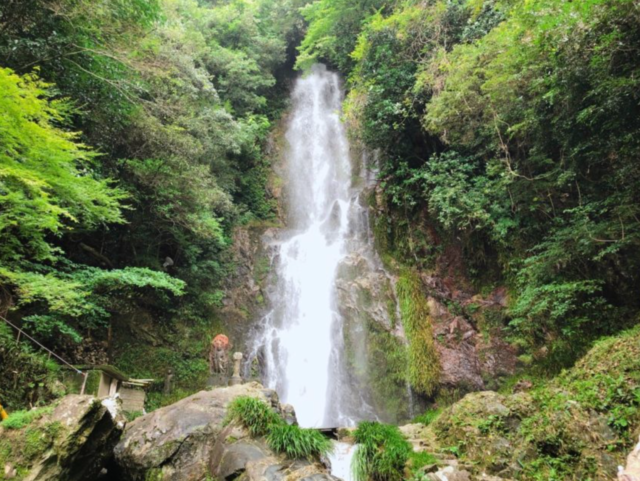 清水の滝は、全国名水百選の清水川の上流にあり、幅13m、落差75mでダイナミックな景観が楽しめると人気です。