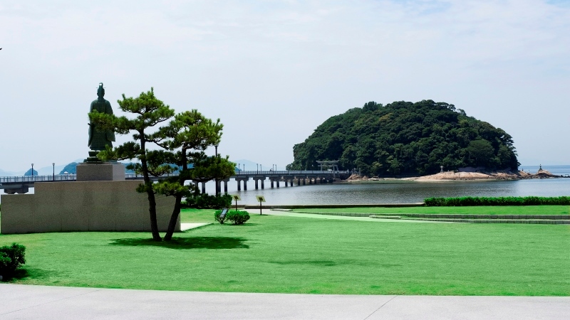 三河湾内に浮かぶ竹島に鎮座している神社で、本島から徒歩で渡ることができます。