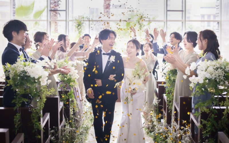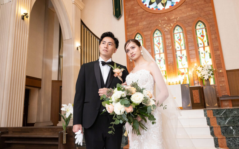 DATE:2025.10 人数:61名 会場:セント・ラファエロチャペル御堂筋連弾のパイプオルガンが響き渡る厳かな挙式 -