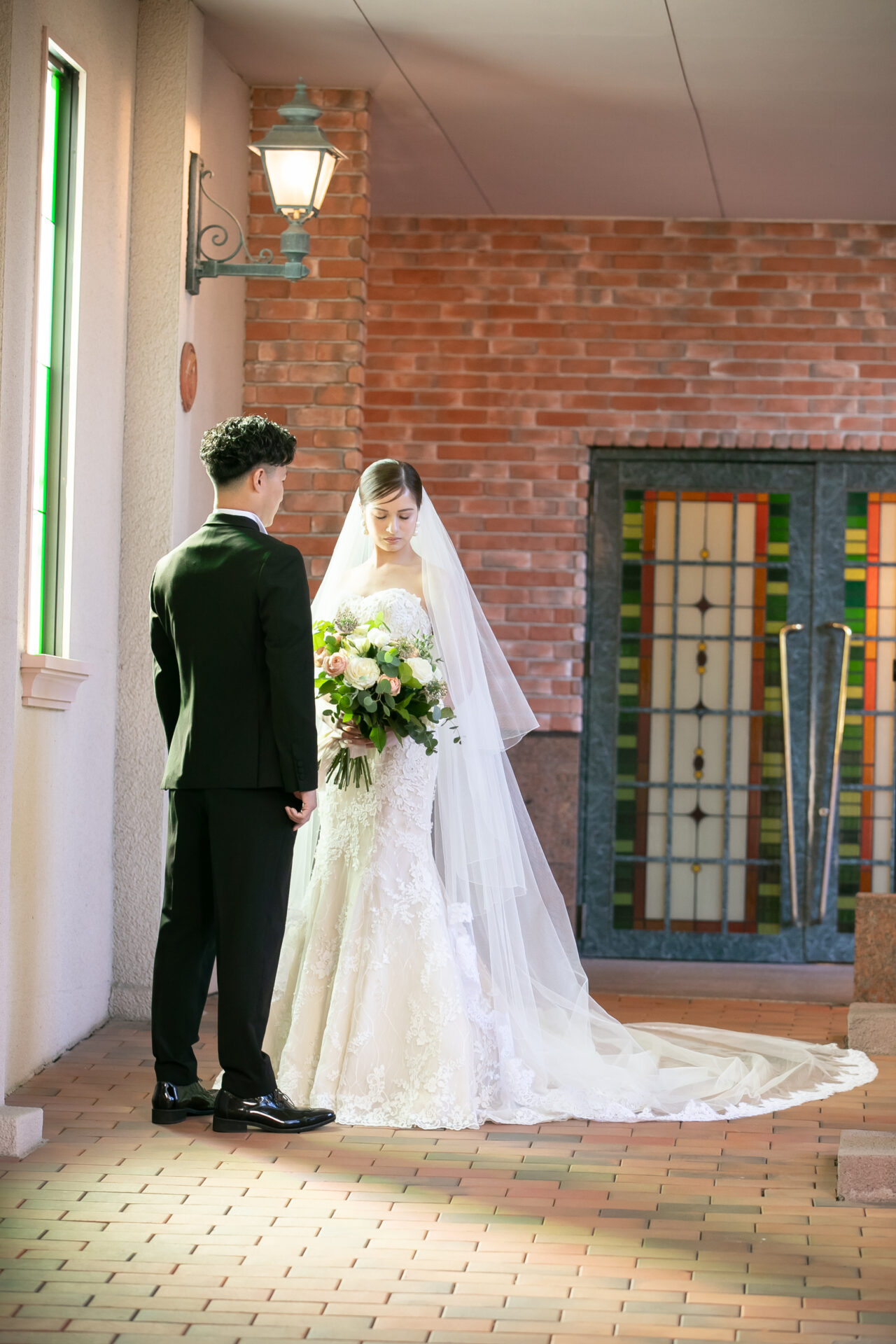 初めてのご見学で大聖堂の扉が開いた瞬間、その空間を実際に体感し「ここで結婚式を挙げたい」と直感されたおふたり。