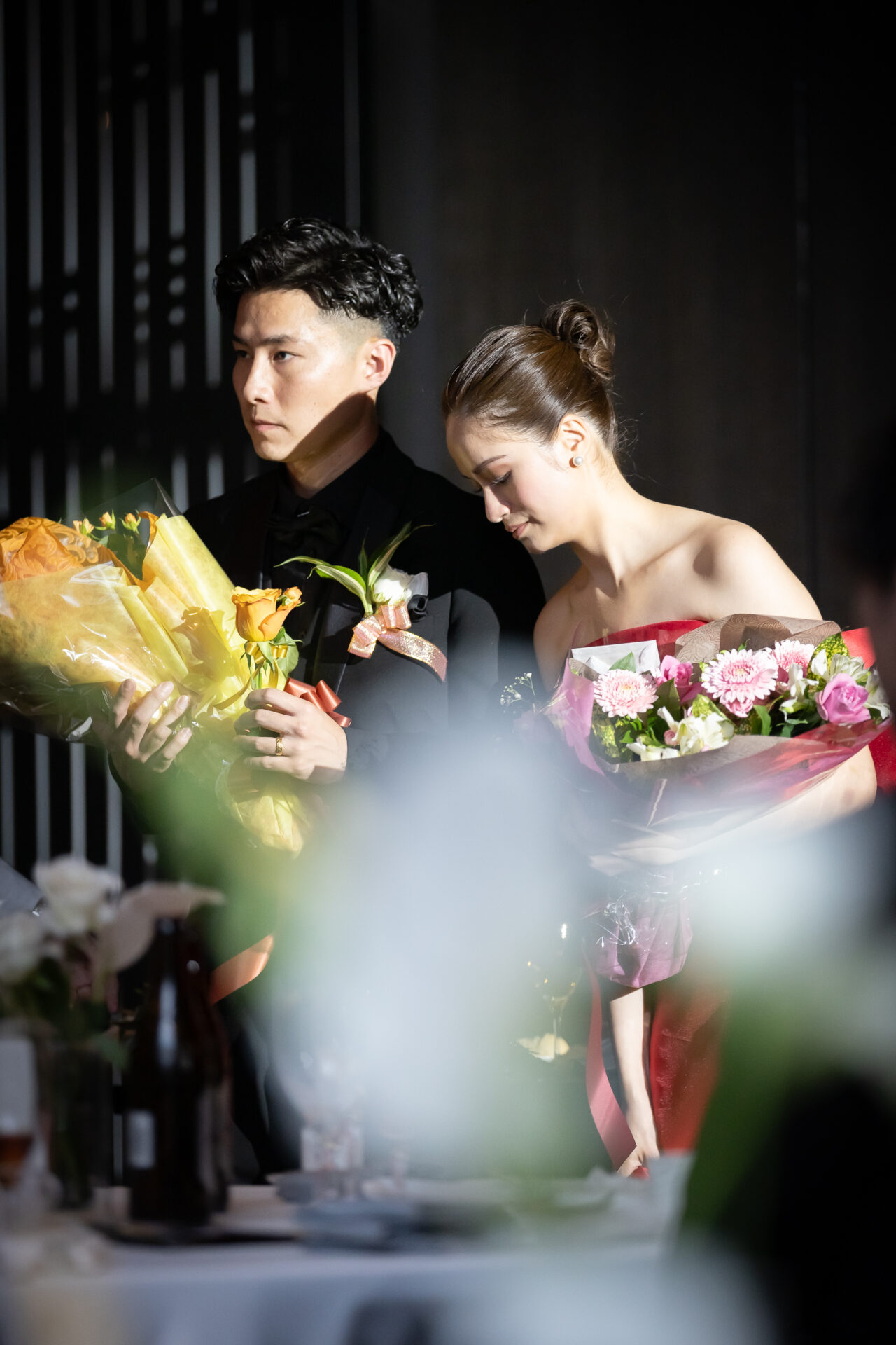 披露宴終盤には、新郎様から新婦様へ大きな赤いバラの花束のサプライズも。