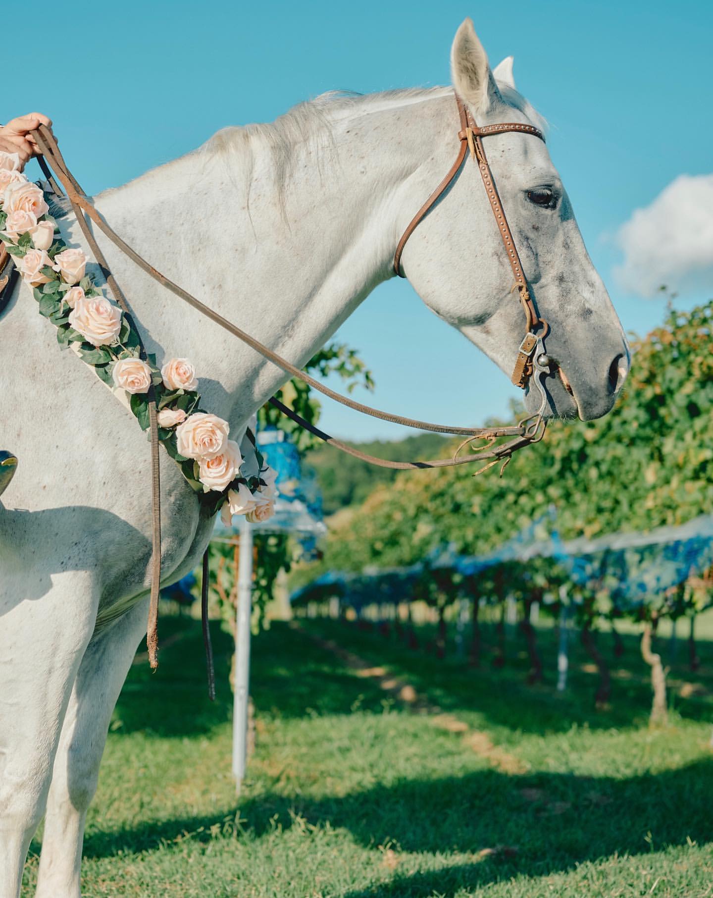 馬のラングラーが挙式前の演出をお手伝いし