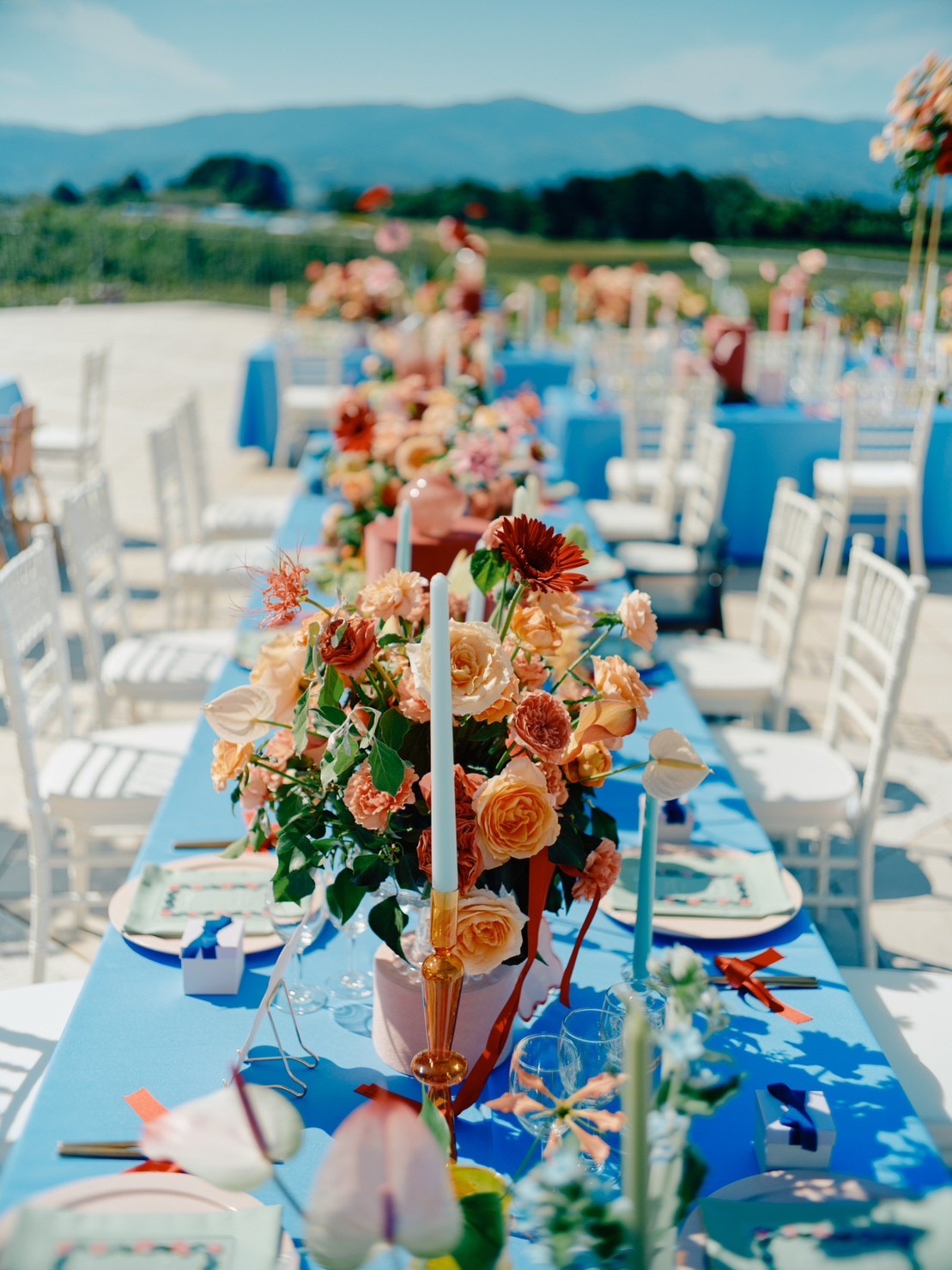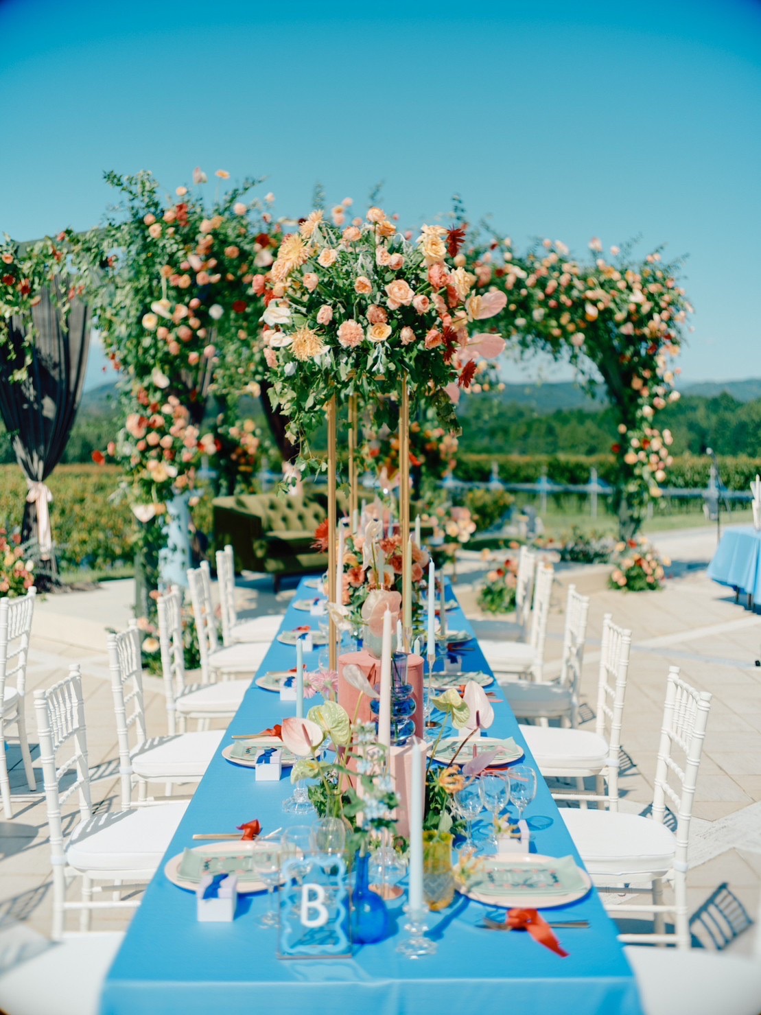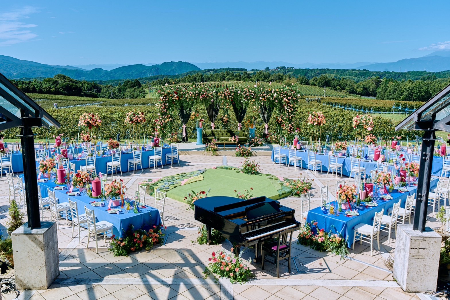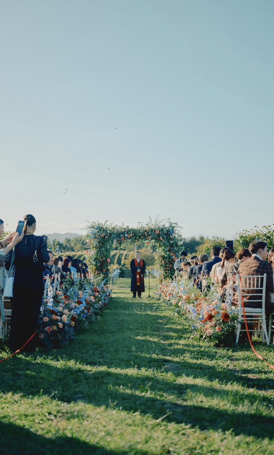 快晴の秋晴れのもと、ぶどう畑のなかで立てる結婚の誓い