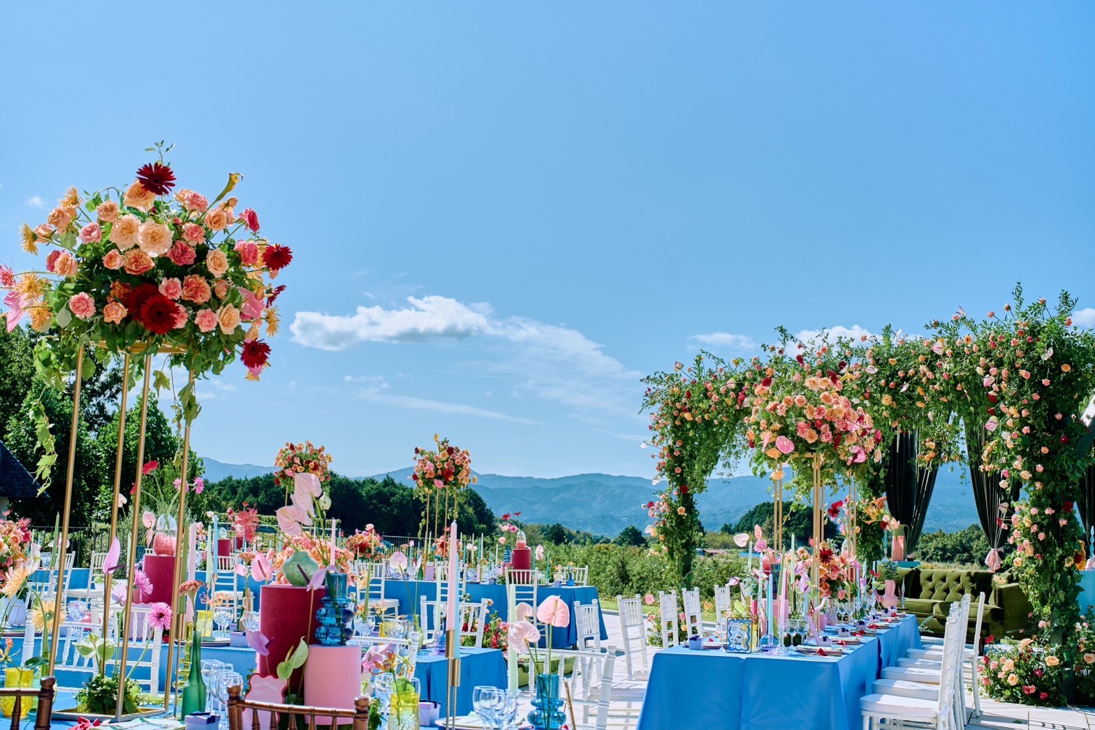 ロマンティクポップな装飾がゲストを出迎え